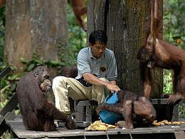 It was mid-morning feeding time at Sepilok Orang-utan Sanctuary, when the rangers lay out the fruits of the forest on the feeding platform in the middle of this preserved patch of Bornean Rainforest, and wait for the orang-utans to return from the forest.