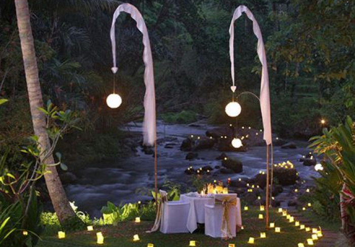 The things I enjoyed most about staying here were the location by the Ayung River (great for a candle-lit dinner right by the river), the luxury of the villas (they're completely private with large pools) and the breakfast setting with views over the rice paddies and hills.
