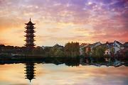 Weeping willow trees line the banks fo the winding waterway, and if you climb to the top of the 52-meter (170-foot) tower, you will be rewarded with splendid views of the lush farmland beyond and a myriad of boats shuttling up and down the Grand Canal, as they have done for over a thousand years.