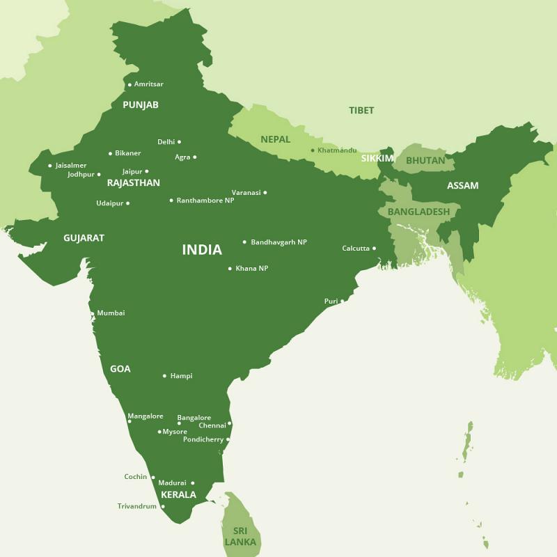 We specialise in tailor-made tours to India and can put together any itinerary for you, be it a stay in the boutique hotels in Kerala, a wildlife tour of central India, a river cruise along the Brahmaputra or a tailor-made tour of Rajastan.